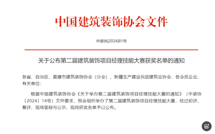 推進(jìn)建筑裝飾行業(yè)工業(yè)化、數(shù)字化、綠色化、裝配化轉(zhuǎn)型升級(jí),中國(guó)建筑裝飾協(xié)會(huì)舉辦了(第二屆)建筑裝飾項(xiàng)目經(jīng)理技能大賽。