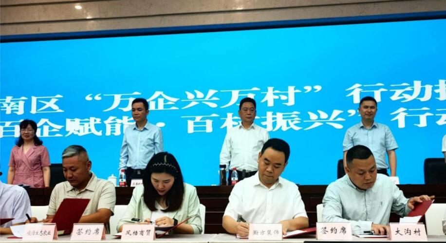 2023年6月2日上午,巴南區(qū)召開(kāi)了萬(wàn)企興萬(wàn)村行動(dòng)推進(jìn)會(huì)暨百企賦能、百村振興行動(dòng)工作會(huì),巴南區(qū)委常委、統(tǒng)戰(zhàn)部部長(zhǎng)徐江海出席會(huì)議并講話(huà)。重慶瀚方裝飾工程有限公司積極響應(yīng)號(hào)召,與圣燈山鎮(zhèn)大溝村進(jìn)行結(jié)對(duì)共建,公司總經(jīng)理譚小平先生與大溝村支部書(shū)記文鋼同志現(xiàn)場(chǎng)簽訂共建協(xié)議。作為巴南區(qū)建筑業(yè)商會(huì)副會(huì)長(zhǎng)的譚小平先生,代表商會(huì)舉牌認(rèn)養(yǎng)兔、豬、雞鴨等畜牧以及認(rèn)領(lǐng)稻田、蔬菜等農(nóng)作物,用實(shí)際行動(dòng)支持萬(wàn)企興萬(wàn)村的推進(jìn)。中