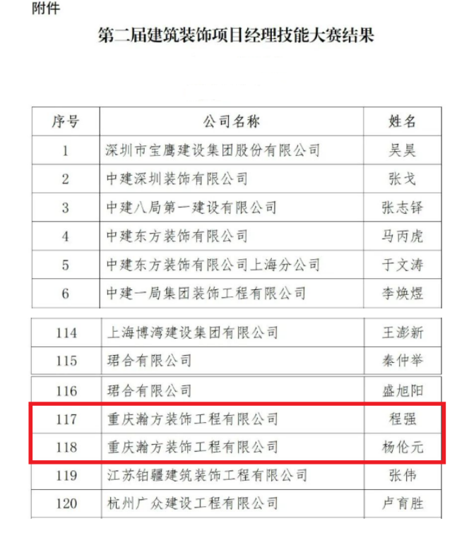 喜報(bào)|瀚方公司程強(qiáng)、楊倫元在中國建筑裝飾協(xié)會舉辦的“建筑裝飾項(xiàng)目經(jīng)理技能大賽”喜獲佳績