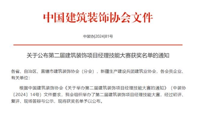 為推進(jìn)建筑裝飾行業(yè)工業(yè)化、數(shù)字化、綠色化、裝配化轉(zhuǎn)型升級,中國建筑裝飾協(xié)會舉辦了(第二屆建筑裝飾項(xiàng)目經(jīng)理技能大賽。大賽旨在以項(xiàng)目生產(chǎn)管理創(chuàng)新為突破口,以賽促學(xué),促進(jìn)行業(yè)技能水平整體提升,加強(qiáng)行業(yè)技能人才隊(duì)伍建設(shè),助推建筑裝飾行業(yè)高質(zhì)量發(fā)展。